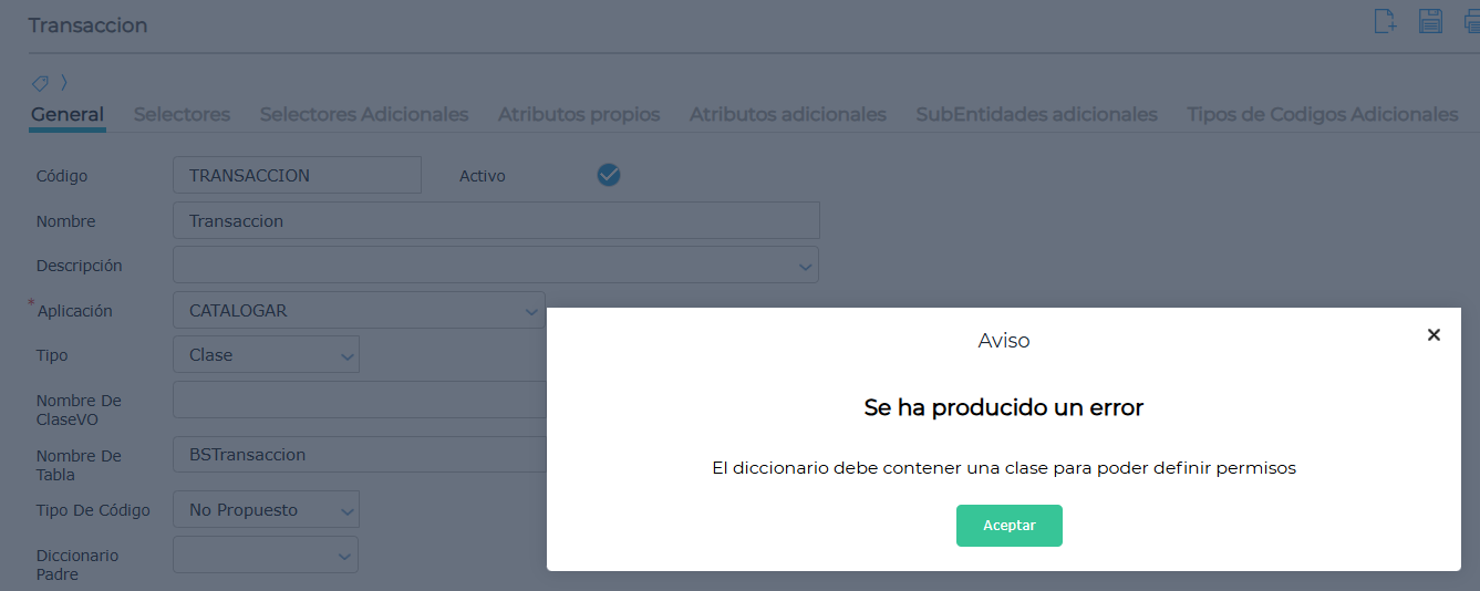 Esto se da porque dicho Diccionario tiene activo el check “Permite Definir Permisos” en el apartado de Seguridad Y Auditoría dentro de la solapa General.