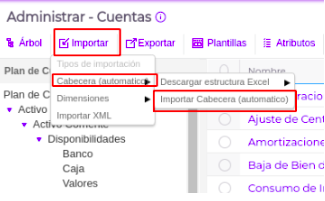 Importar> Cabecera (automático)> Importar Cabecera (automático)