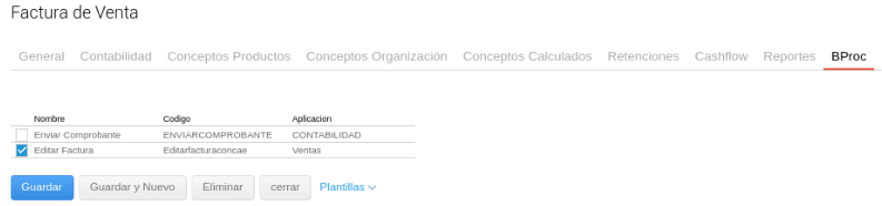 Dicho BProc estará disponible sólo en los tipos de documento de categorías “Factura de Venta” y “Punto de Venta”.