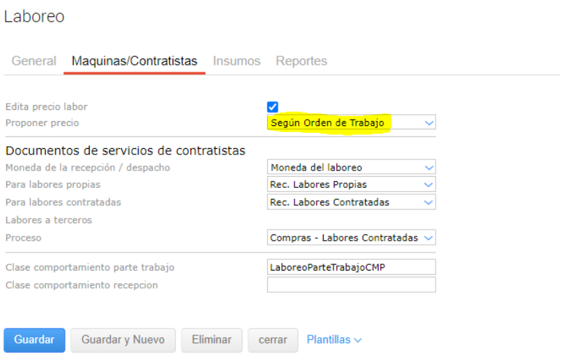 El sistema no arrastra los precios al realizar un Laboreo a partir de una Orden de Trabajo previamente cargada.