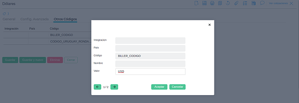 En el maestro de monedas se debe completar el código adicional BILLER_CODIGO según corresponda con la siguiente tabla: Tablas Uruguay