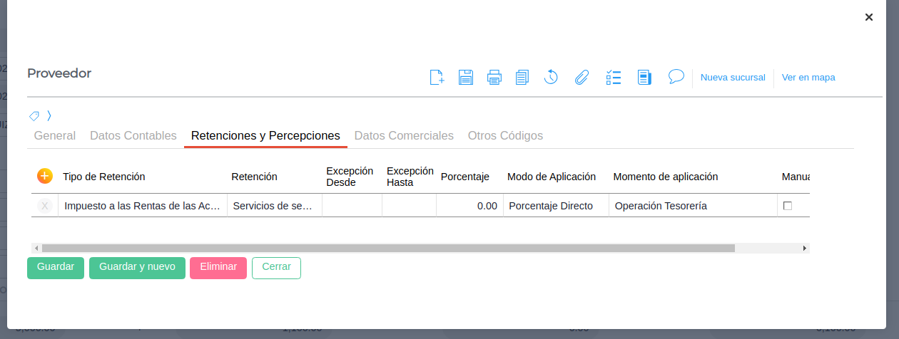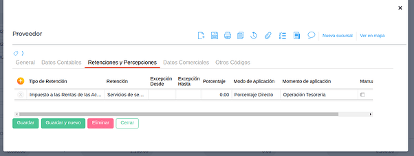 El proveedor tiene configurada la retención