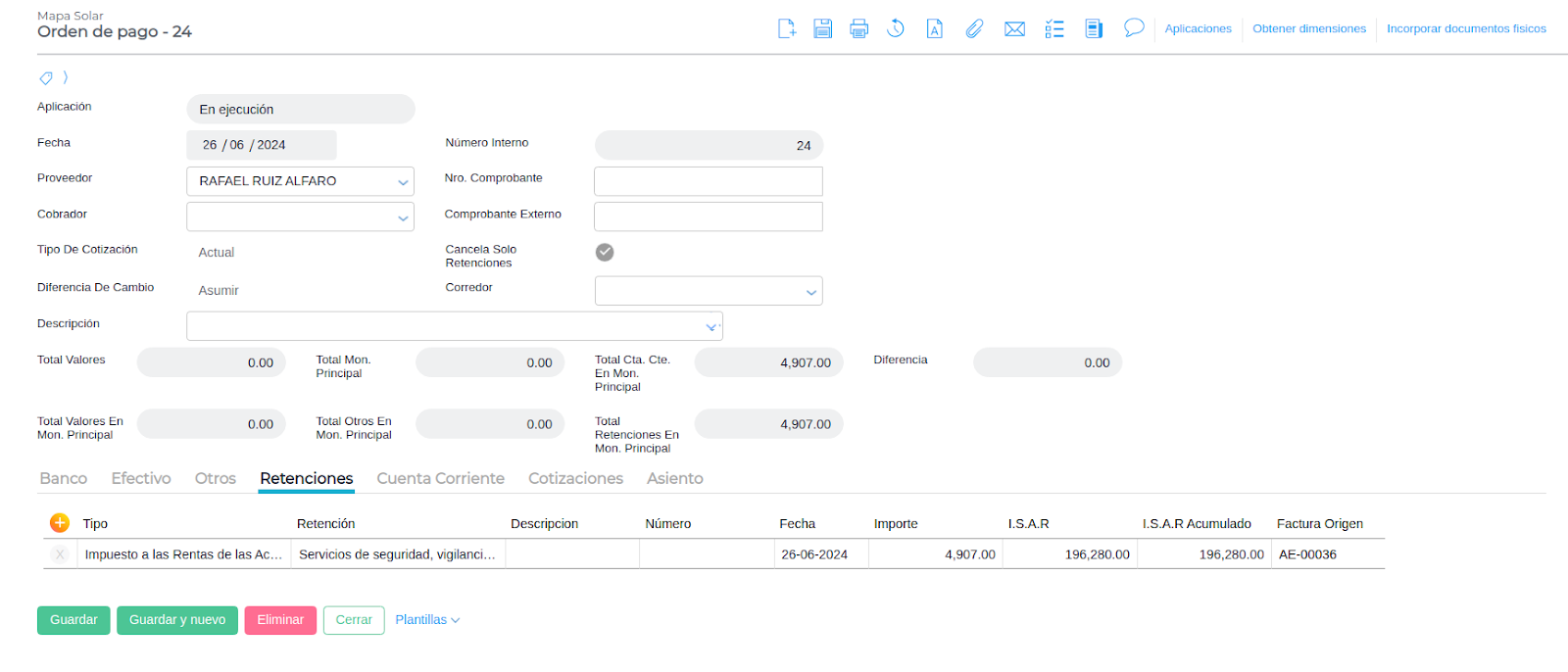 - Cancelar solo retenciones