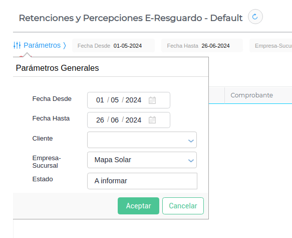 Ingresar a la vista Retenciones y Percepciones E-Resguardo.