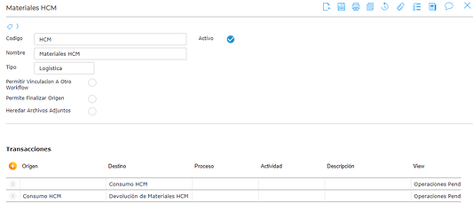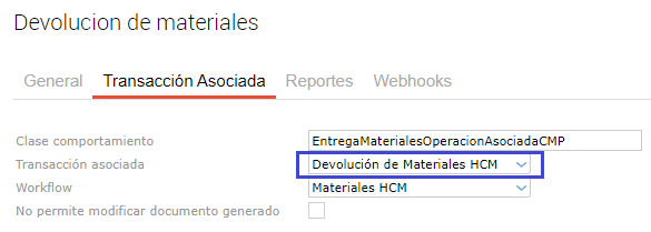 - Devolución de materiales, detalle de transacción asociada