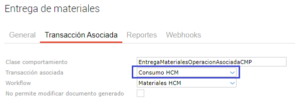 - Entrega de materiales, detalle de transacción asociada