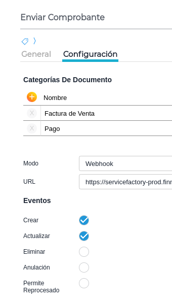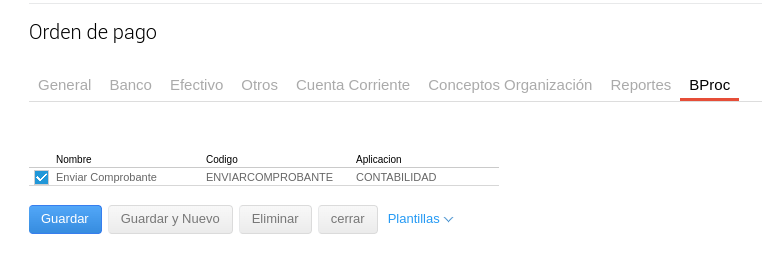 Luego ir, en el Maestro de “Tipo de Documentos”, a la solapa “Bproc” para activar el bproc “Enviar Comprobante”. De este modo se indica al sistema que debe ejecutar el procedimiento de envío de email automático.