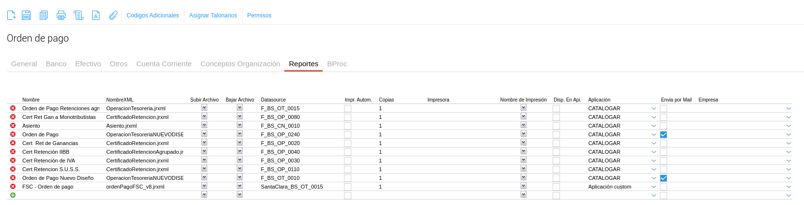 - En el Maestro “Tipo de Documentos”, en la solapa “Reportes”, hay una columna que se llama “Envía por email” para poder seleccionar cuál/es son los reportes a enviar por email.