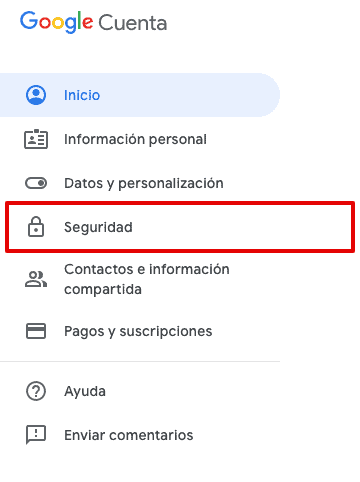 - Llevará a una pantalla de configuración de la cuenta, donde hay que acceder al menú lateral «Seguridad»: