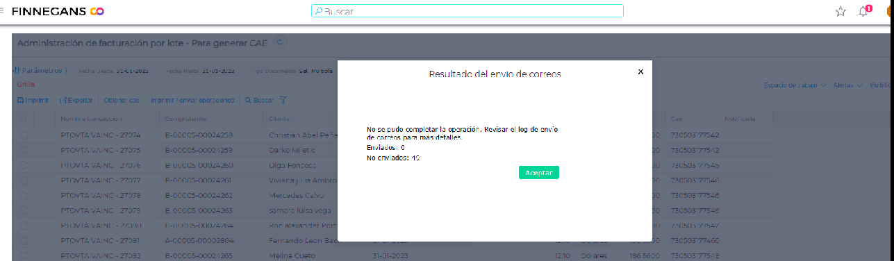 Consulta: Desde el sistema no se puede completar la operación de envío de correos.