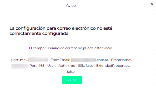 Al intentar enviar una transacción por mail sale el siguiente mensaje: