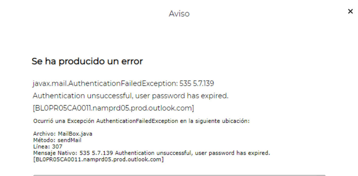 Consulta: Ocurre un error al enviar mails desde el sistema.