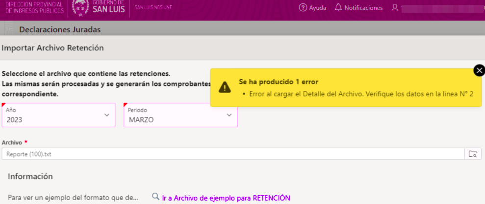 Consulta: se desea subir el aplicativo de Retenciones San Luis al organismo de recaudación correspondiente, pero aparece un cartel de error desde dicha pagina.