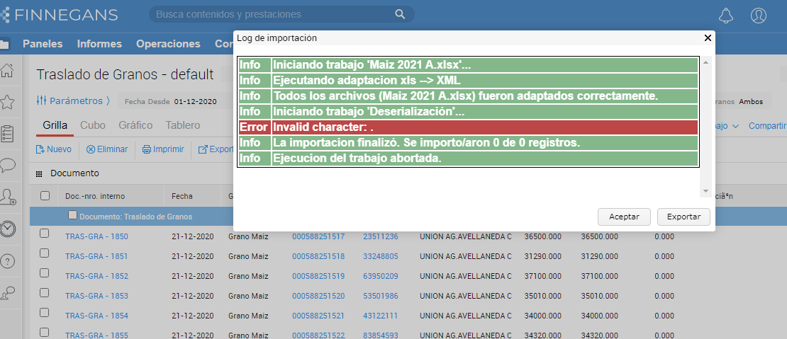Consulta: Al importar desde excel las cartas de porte el sistema arroja el siguiente error: