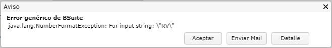 Corresponde a un inconveniente en la cadena de caracteres “RV” que es el Remito de Ventas.