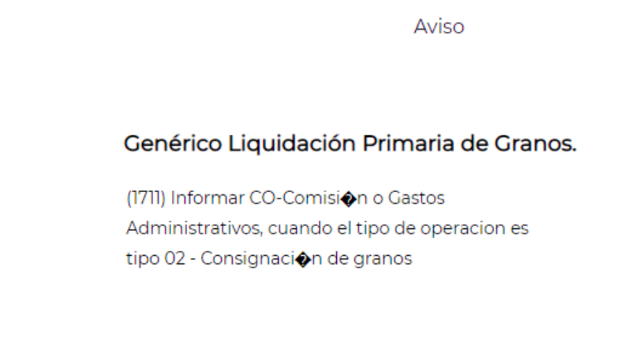 Al obtener COE de una liquidación de compra de granos que contiene comisiones, el sistema arroja el siguiente error: