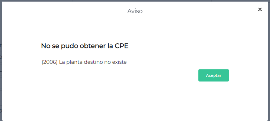 Consulta: El sistema devuelve un mensaje de error al intentar obtener CPE: “La planta destino no existe”.
