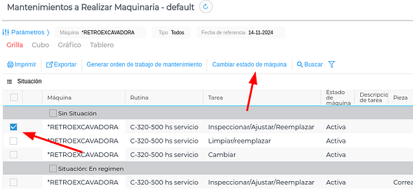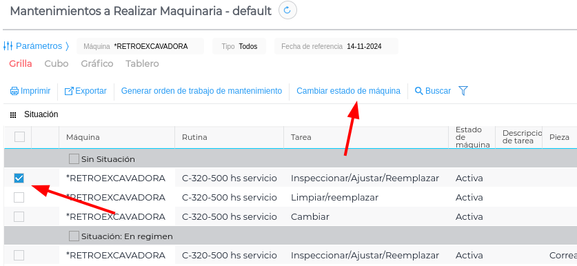 Adicionalmente, se creó un informe denominado “Mantenimientos a Realizar Maquinaria”, que funciona de forma similar al informe de “Mantenimientos a Realizar”, con dos modificaciones: