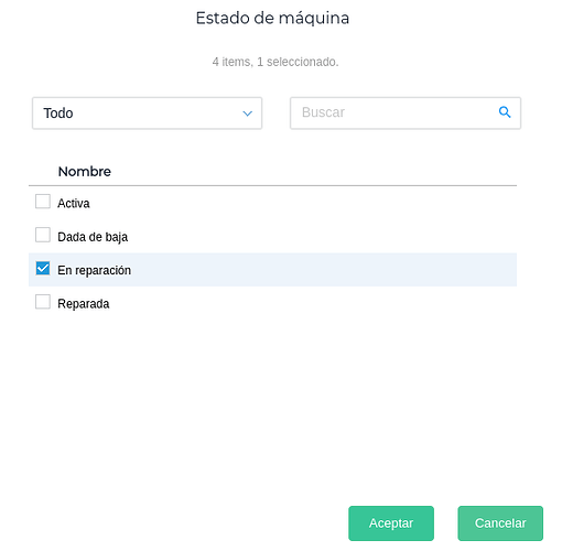 Desplegando el campo, aparece un pop up con los estados ingresados anteriormente y se clickea en Aceptar: