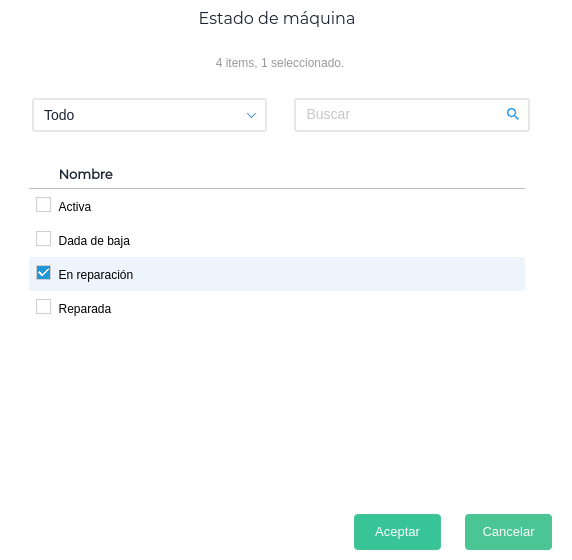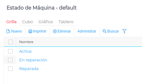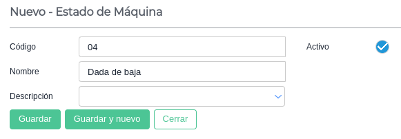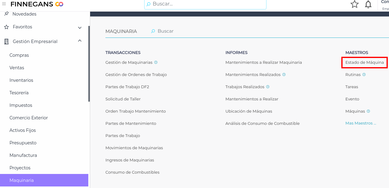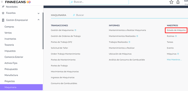 Estos estados podrán ser utilizados en el maestro de Máquinas, dentro de Menú → Gestión empresarial → Maquinaria → Maestros → Máquinas