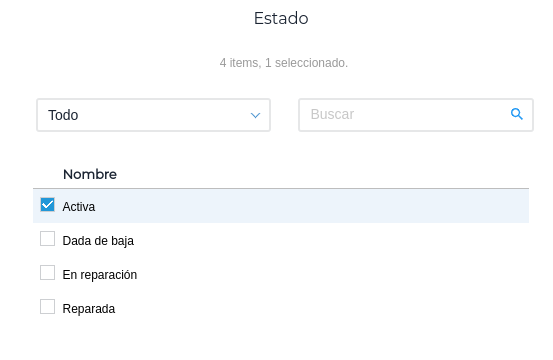 - Activo: checkbox que indica que el estado se encuentra disponible para utilizar en transacciones o no