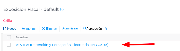 Ingresar a la exposición fiscal del documento origen que se indicó en los parámetros del informe. Por ejemplo: ARCIBA (Retención y Percepción Efectuada IIBB CABA).