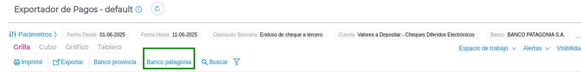 Se ha incorporado una nueva herramienta que permite la exportación de pagos, utilizando la operación bancaria endoso de echeq, a un archivo TXT, para ser subidos al Banco Patagonia.
