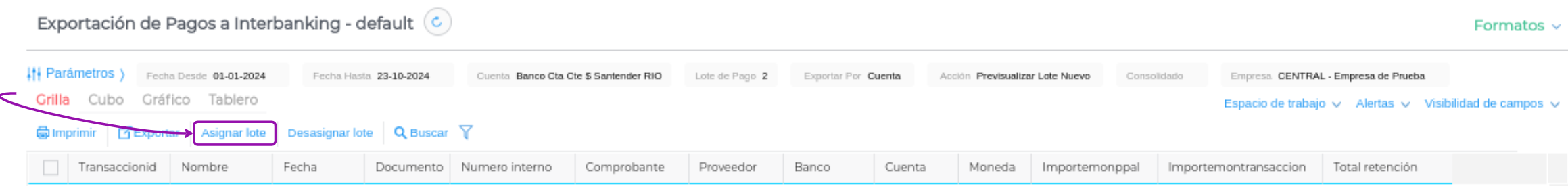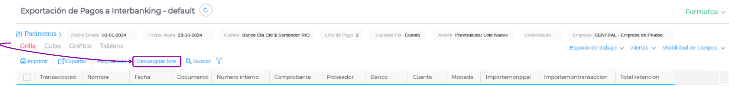 | Modo | Permite la edición del lote subido en Interbanking. |