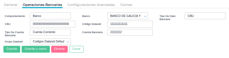 Más información: Maestro de Tipos de Operaciones Bancarias - Tesorería - Base de Conocimiento Finnegans