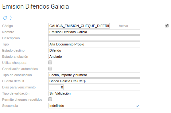 El código debe ser: GALICIA_EMISION_CHEQUE_DIFERIDO