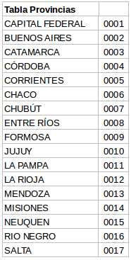 Código de Provincia del Beneficiario: Se informa según el código de provincia indicado en la dirección FISCAL del Proveedor. Debe configurarse el código adicional en el Maestro de Provincias, según la tabla mencionada en las configuraciones necesarias. De informarse 00 se asumirá el código 02 – Buenos Aires.