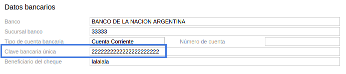 El CBU se indica en el tercero en el campo Clave bancaria única.