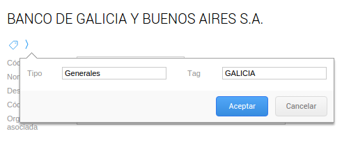 . En Tipo se escribe la palabra Generales y en Tag se escribe GALICIA.