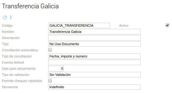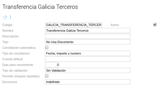 El código debe ser: GALICIA_TRANSFERENCIA_TERCERO