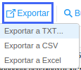 - Para descargar el archivo que se enviará al Banco se hace clic en el botón Exportar y se selecciona la opción Exportar a TXT