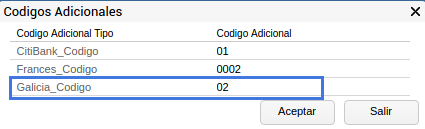 Se deben configurar también los tipos de operaciones bancarias que serán utilizadas en la exportación. Es importante indicar correctamente los códigos como se muestran a continuación.