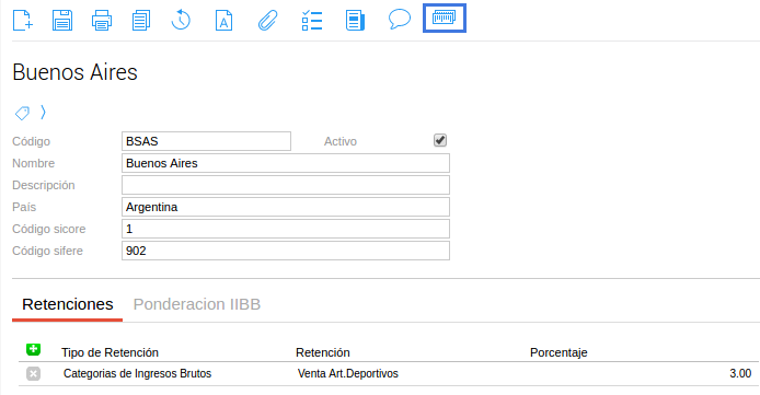 En el maestro de Provincias, se deben configurar los Códigos Adicionales.