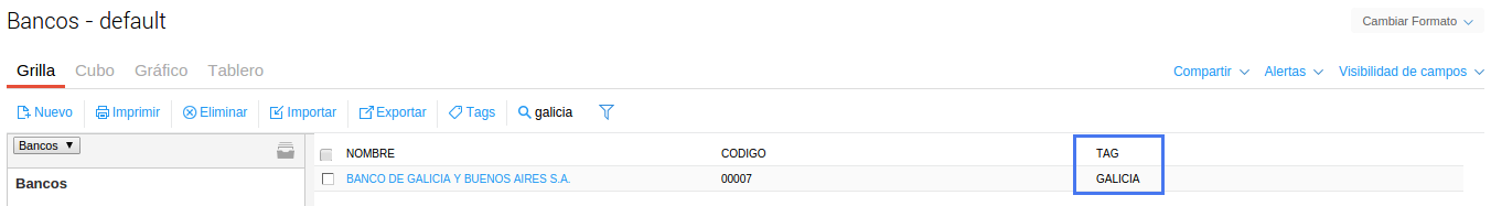 En el maestro de Bancos, el mismo debe tener el Tag GALICIA.