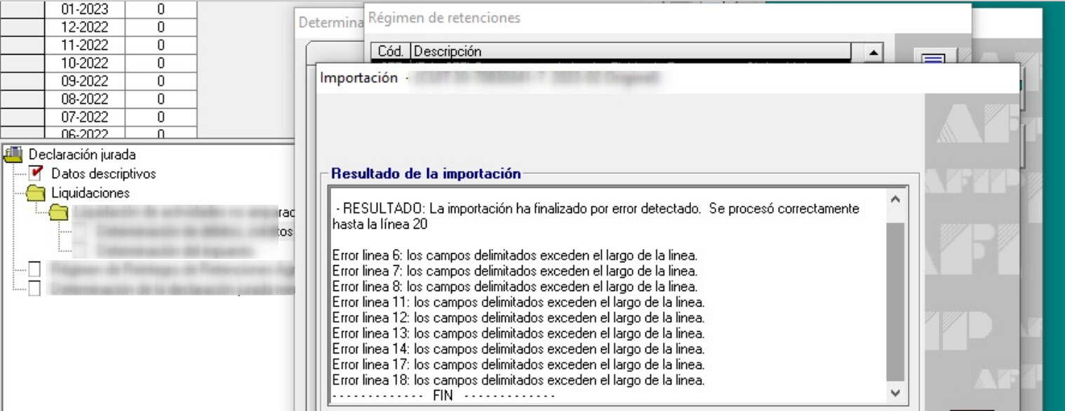 Al cargar el TXT en SIAP, obtenemos el error visto anteriormente.
