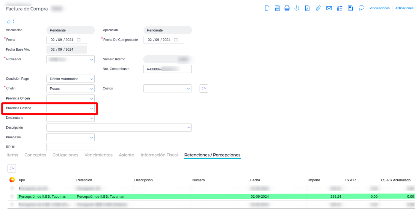 Verificar que las facturas de compra tengan indicada la provincia destino.