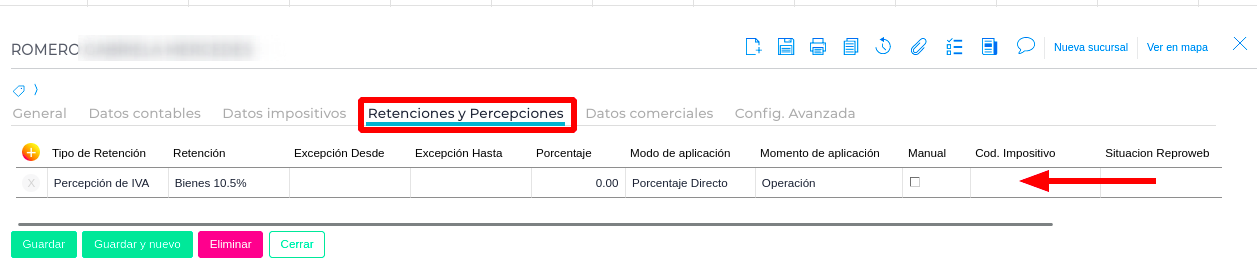 Dentro de la solapa “Retenciones y Percepciones” agregar la Percepción de IVA.