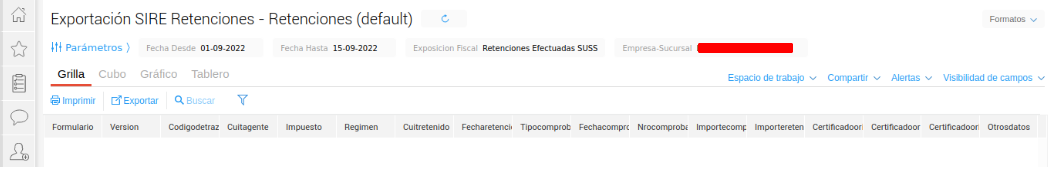 Ir a Menú > Gestión Empresarial > Impuestos > Maestros > Exposición Fiscal > Retenciones Efectuadas SUSS