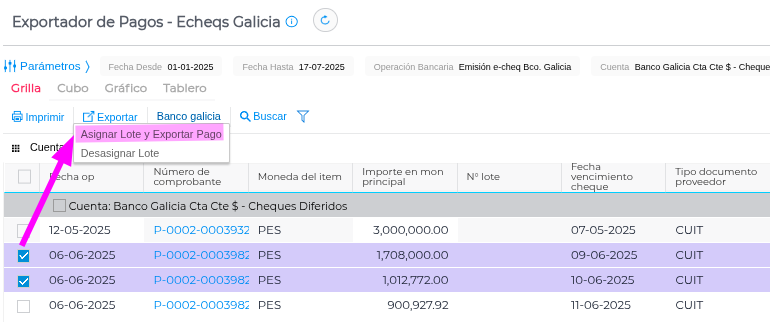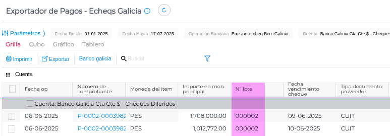 Más información: Grilla Exportador de pagos - Cuentas a pagar - Base de Conocimiento Finnegans