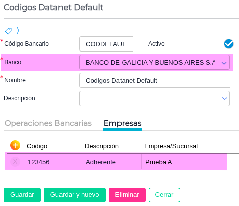 Más información: Maestro de Códigos Bancarios - Tesorería - Base de Conocimiento Finnegans