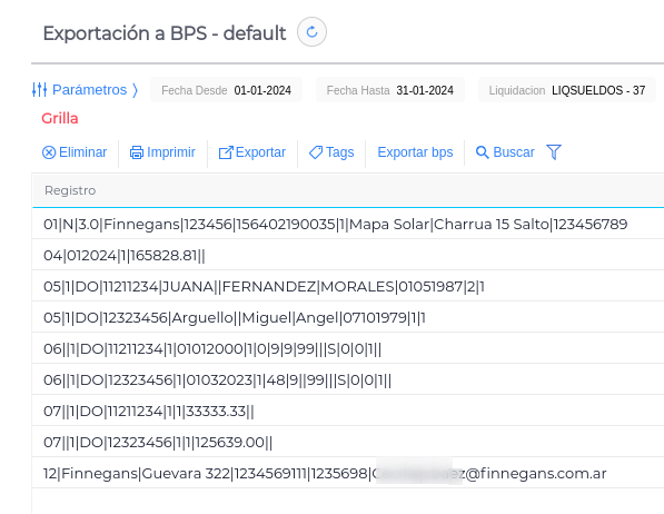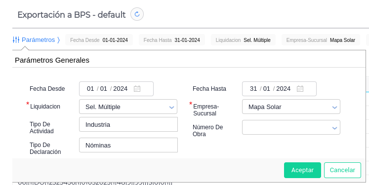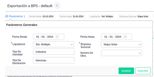 Para el correcto uso del exportador, es necesario tener configurados todos los conceptos de liquidación, junto con su correspondiente código BPS