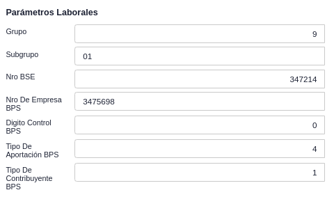 Se debe ingresar los campos de los parámetros laborales, accediendo a través de la siguiente ruta: configuración / Empresas/ Empresa