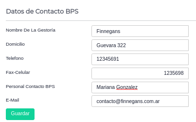 La ruta de acceso es Configuración/Empresas/Datos de Contacto BPS