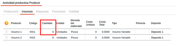 - Cantidad: se completa con la cantidad correspondiente a los productos elaborados o insumos/semielaborados, en tipo 0 y 1.