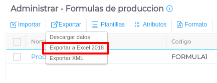 La funcionalidad permite exportar únicamente la cabecera de las fórmulas.