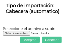 Luego, aparecerá el siguiente pop up donde se seleccionará el archivo a importar. Una vez seleccionado, presionar “Aceptar” y se cargará la cabecera en el sistema.